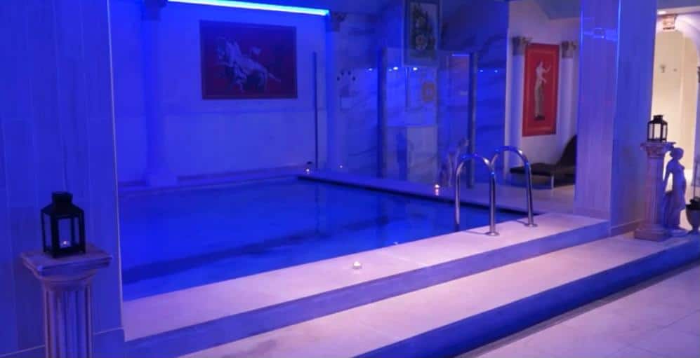 PISCINA INTERNACon: cascate laterali, getto controcorrente americano, getti idromassaggio verticali per massaggio plantare, lettini idromassaggio e cromoterapia